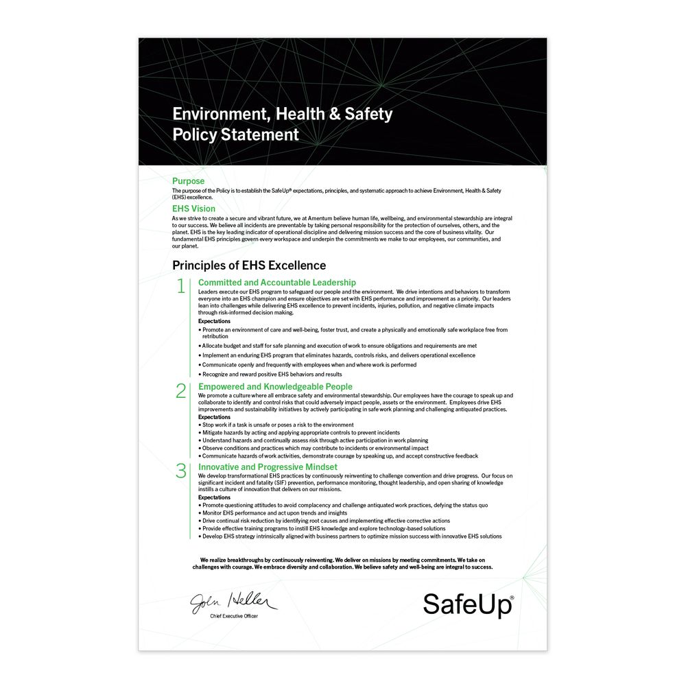 This product option is for the EHS Policy Poster without the official amentum branding. Size: 24 x 36.