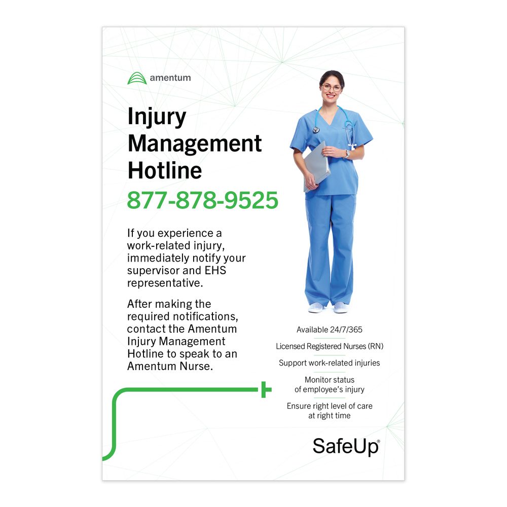 This product option is for the Injury Management Hotline Poster with the Logo includes official amentum branding. Size: 24 x 36.